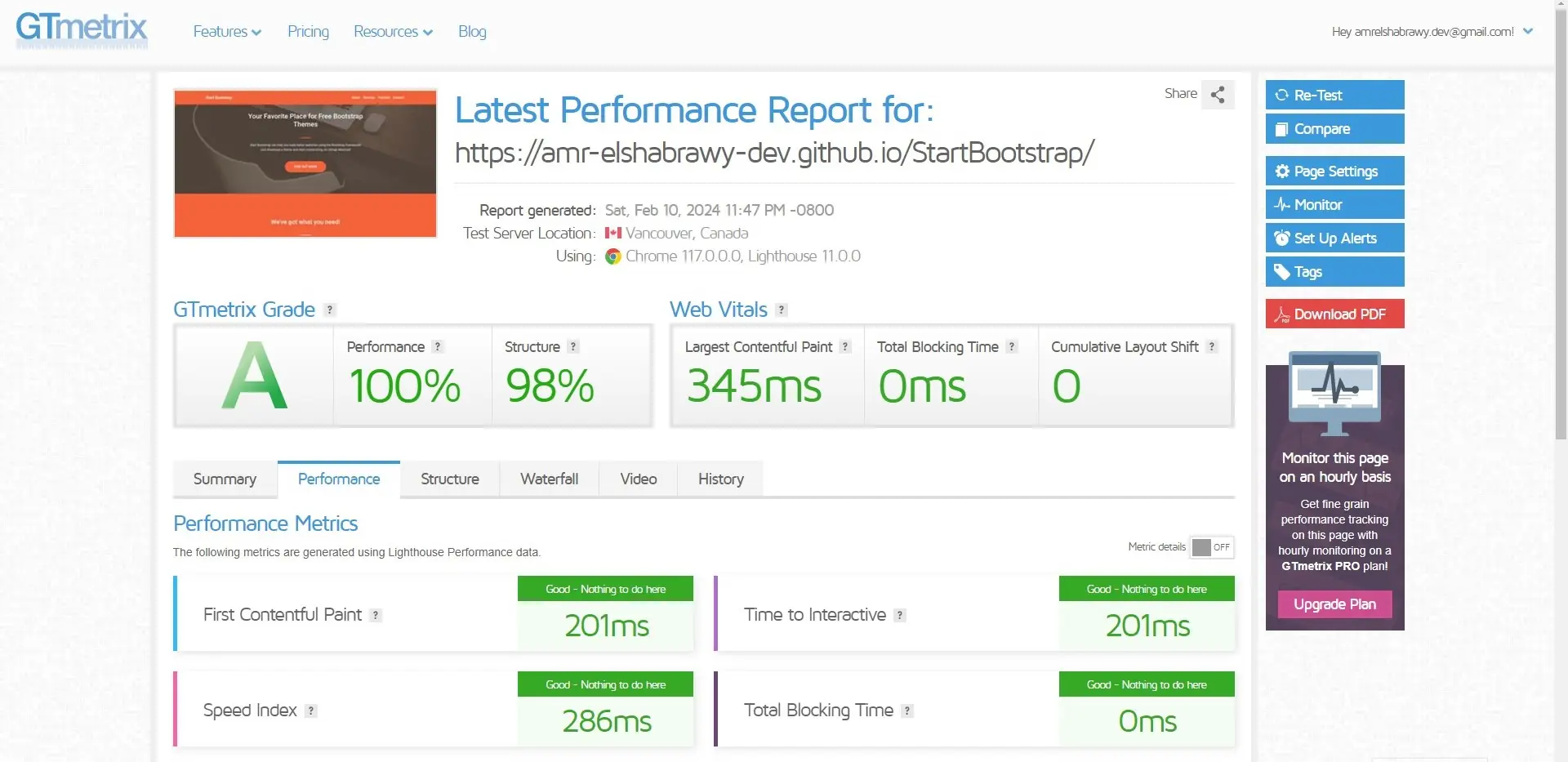 Test the performance of the webpage after deploy by using GTmetrix.